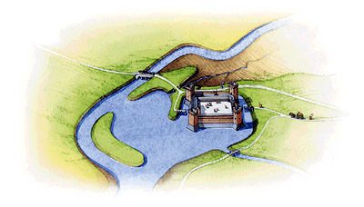 Calais devint partie intégrante de l'Angleterre, avec sa propre représentation au Parlement, mais une grande partie de la France n'était pas convaincue. L'Angleterre entreprit donc un effort massif de fortification, dont le pivot était un système d'écluses sur la rivière Hames, dont la fermeture rendrait la campagne environnante encore plus impraticable qu'elle ne l'était déjà en l'inondant. À proximité de ces écluses se trouvait un pont sur la Hames, qui représentait le seul moyen d'accéder à Calais par la terre. Ces écluses et ce pont devaient être protégés par un fort, et ce fort était le fort Nieulay.