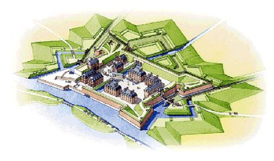 Aussi importantes que soient les écluses de Fort Nieulay, elles se trouvaient toujours à l'extérieur du fort, tout comme le pont sur la Hames, ce qu'un Vauban (1633-1707) à l'œil aiguisé reconnut immédiatement lorsqu'il vint en visite en 1675. Sébastien Le Prestre de Vauban était bien sûr le père de la forteresse étoilée, dont les principes novateurs de fortification ont défini la forteresse étoilée pour le reste de l'histoire de la forteresse étoilée. Il ordonna que le fort Nieulay soit rasé et qu'une nouvelle fortification soit construite légèrement à l'est, entourant cette fois le pont et les vannes. C'est le dernier fort Nieulay que nous voyons aujourd'hui, car personne ne pouvait construire une meilleure forteresse étoilée que Vauban !